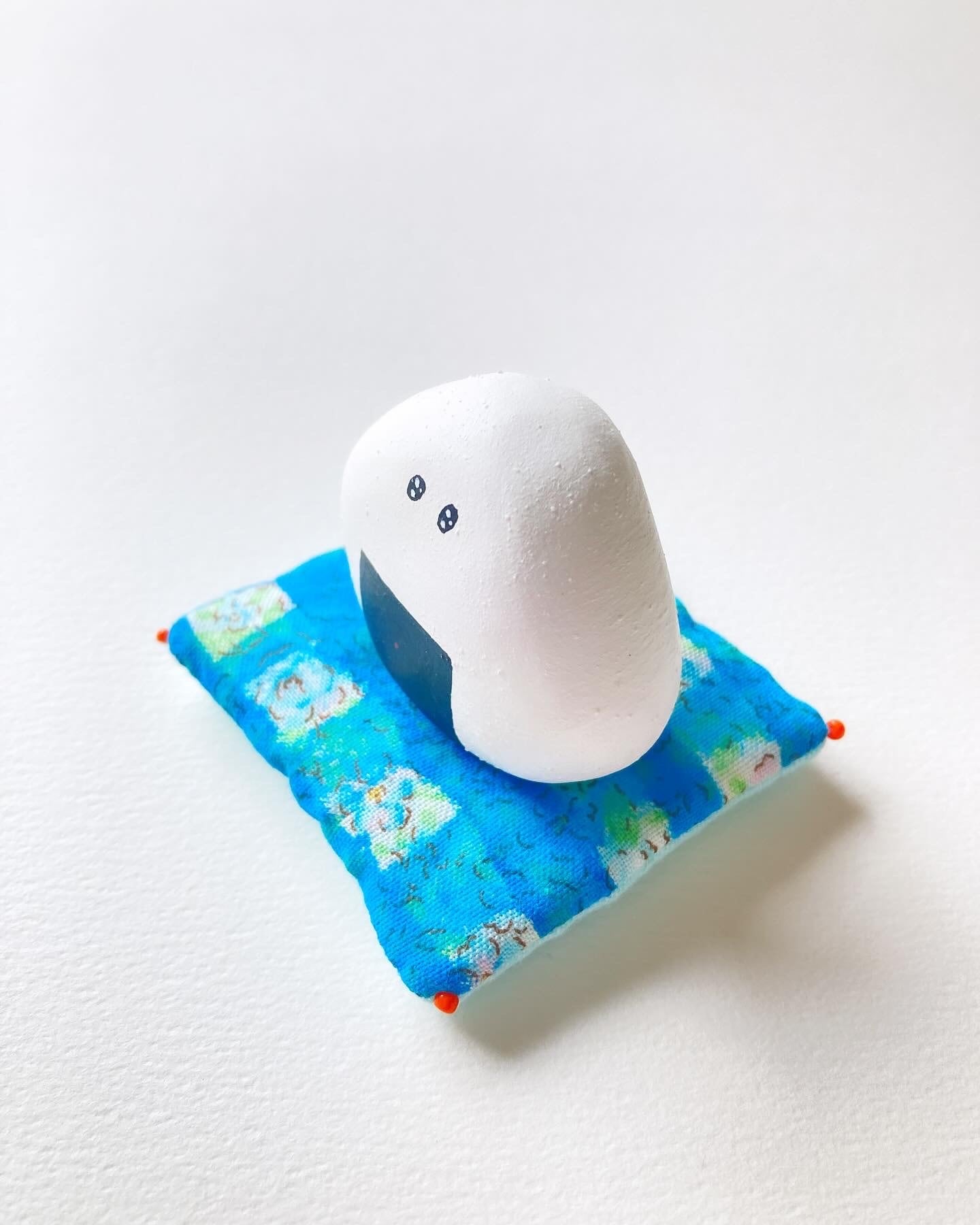 石粉粘土にアクリル絵の具で絵付けしています。色が落ちないよう防水材を塗っていますが、取り扱いにご注意ください。手仕事の風合いをお楽しみくださいませ。
