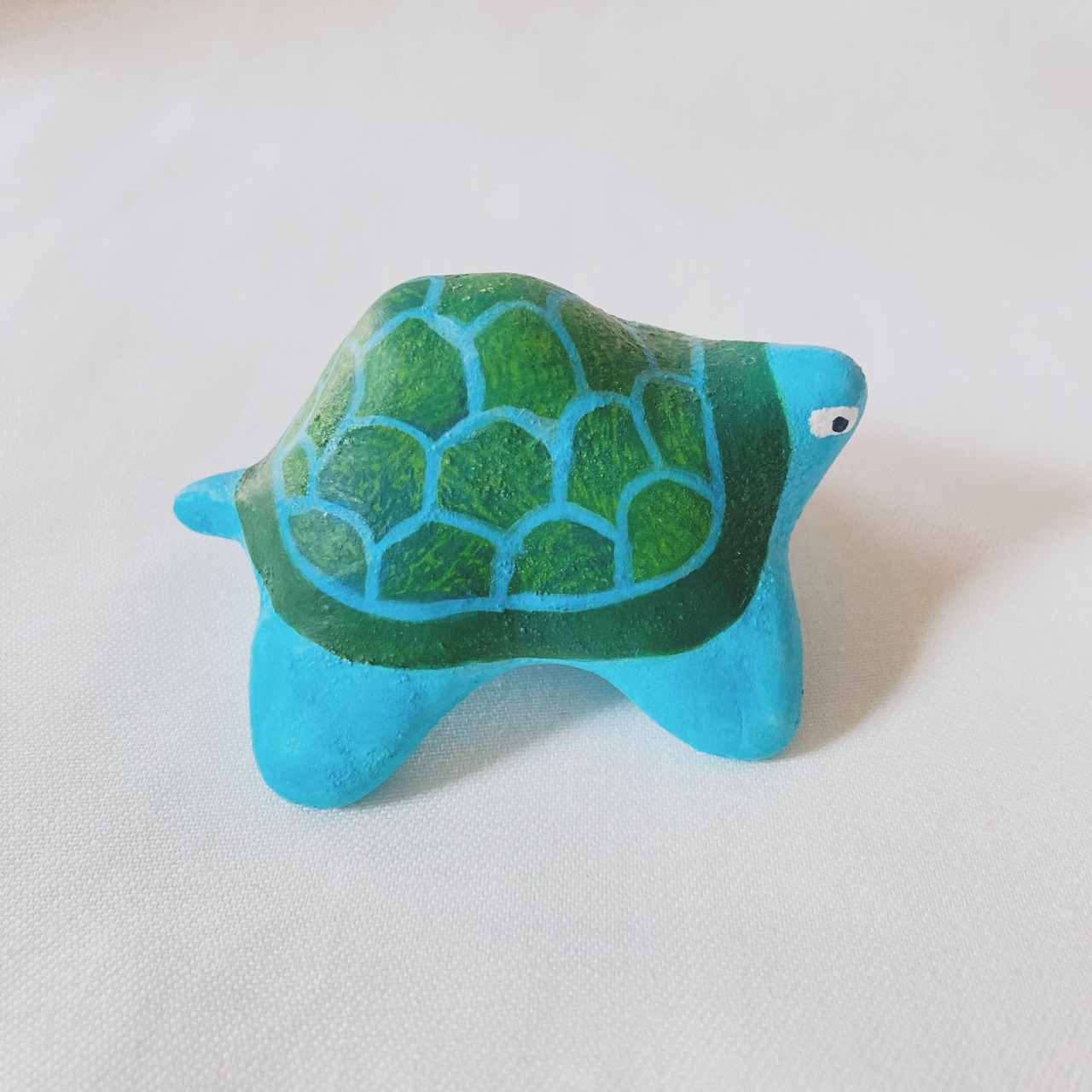 石粉粘土にアクリル絵の具で絵付けしています。色が落ちないよう防水材を塗っていますが、取り扱いにご注意ください。手仕事の風合いをお楽しみくださいませ。